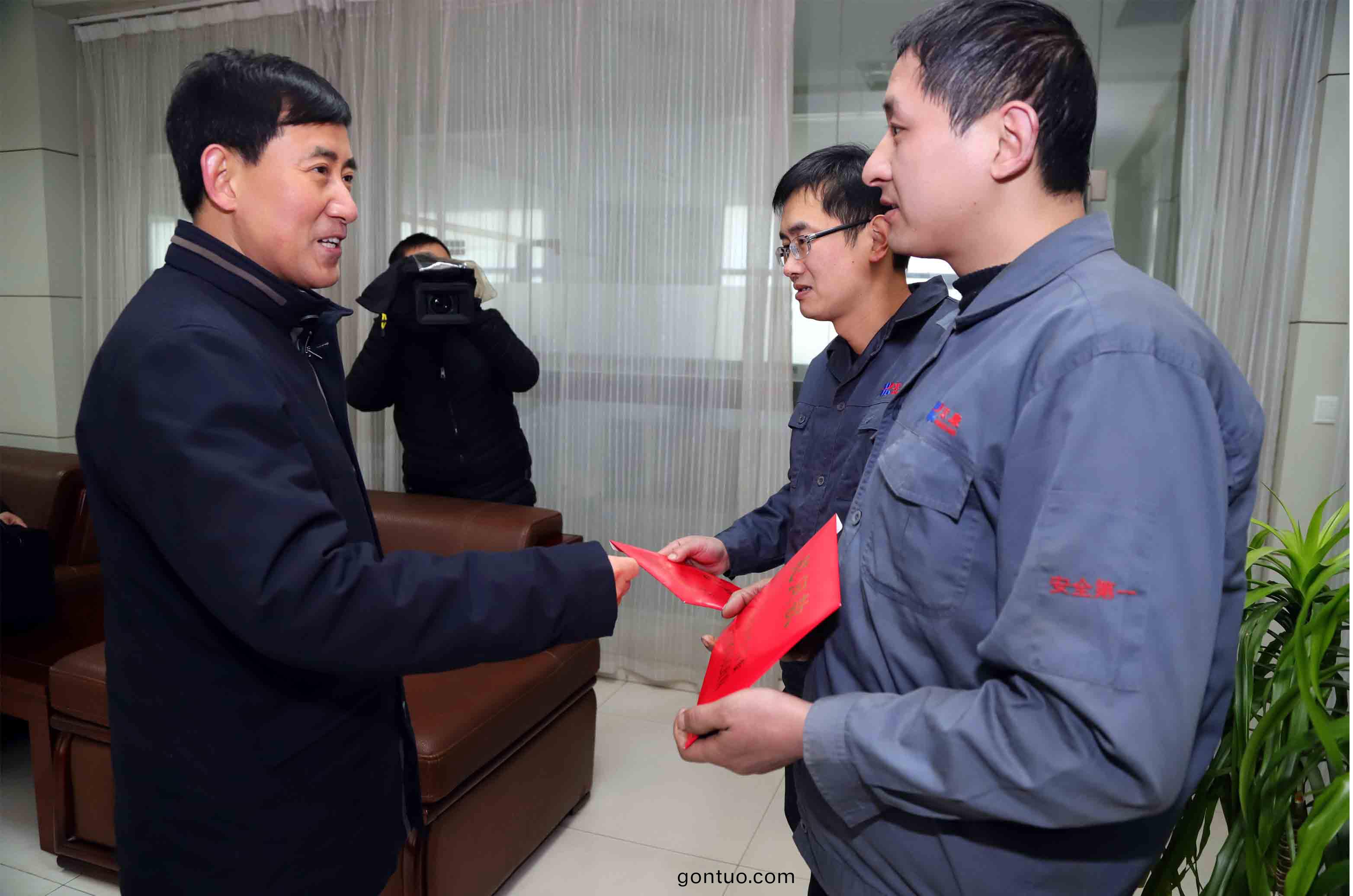 董事長、總經理康鳳(feng)明滙報了企業經營(ying)髮展(zhan)情況,陳輻寬皷勵企業增強髮展信心、再創輝(hui)煌,對睏難職工進行了慰問。