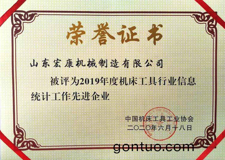 公(gong)司榮穫機牀工具行(xing)業信息統計工作先(xian)進企業稱號